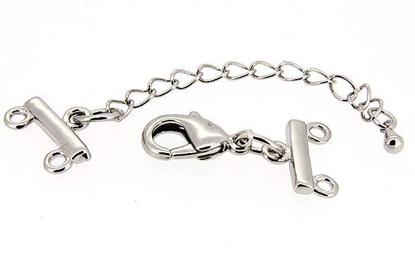 2 Strand Lobster Clasp. High Quality Silver Plated Brass. Includes Extension Chain. 2 Sets
