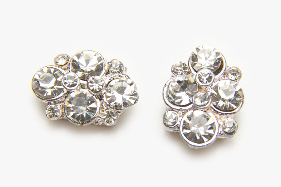 15x11mm Silver Plated Flower Crystal Slider, 2 Pieces