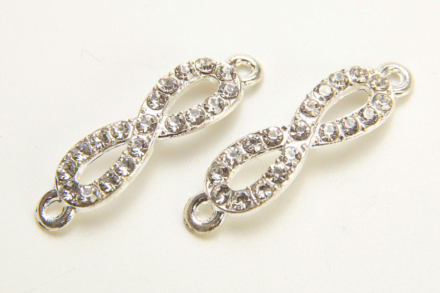 26x7mm Silver Plated infinity Crystal Slider, 2 Pieces