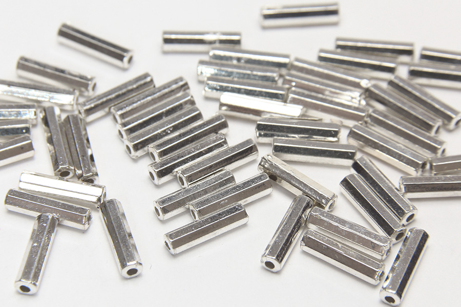 These 11x3mm sized Octagon Straight Tubes are plated with Bright Silver and have a 0.6mm Hole. There are 50 per pack.
