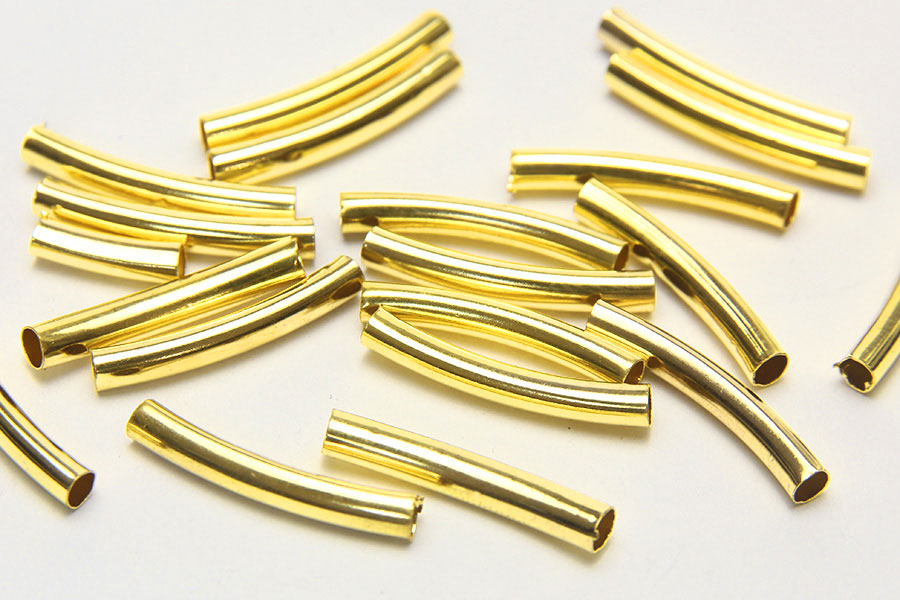 These 20x3mm sized Curved Tubes are plated with Gold and have a 2.4mm Hole. There are 20 per pack.