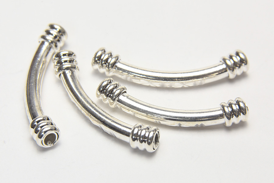 These 40x6mm sized Fancy Curved Tubes are plated with Bright Silver and have a 2.8mm Hole. There are 4 per pack.