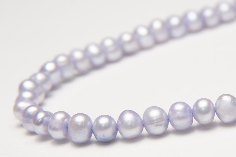 A 16 inch strand of high quality Blue Potato Pearls. These beautiful pale blue pearls look sophisticated and elegant.