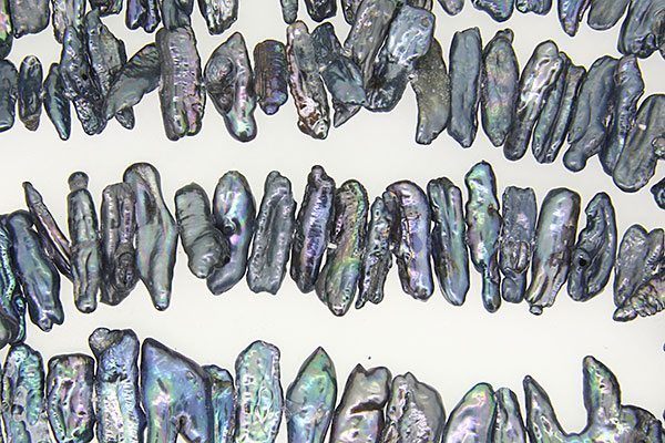 6x19mm Silver Peacock Biwa Freshwater Pearls