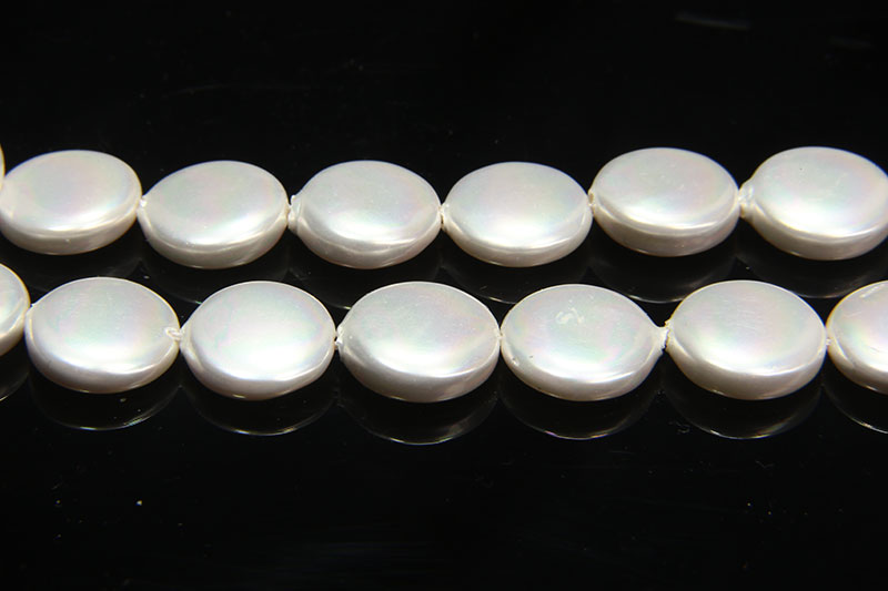 11mm White Mother of Pearl Coin, 16 Inch Strand