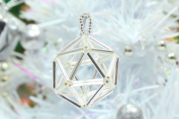 Wow your friends with these spectacular Christmas baubles. These simple and fun Christmas decorations are made from a 3D lattice of lustrous Preciosa bugle beads on a strong and invisible thread of monofilament illusion cord and hung from a ring of Preciosa Seed Beads.