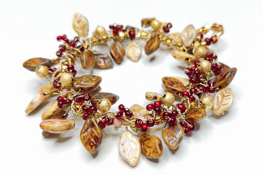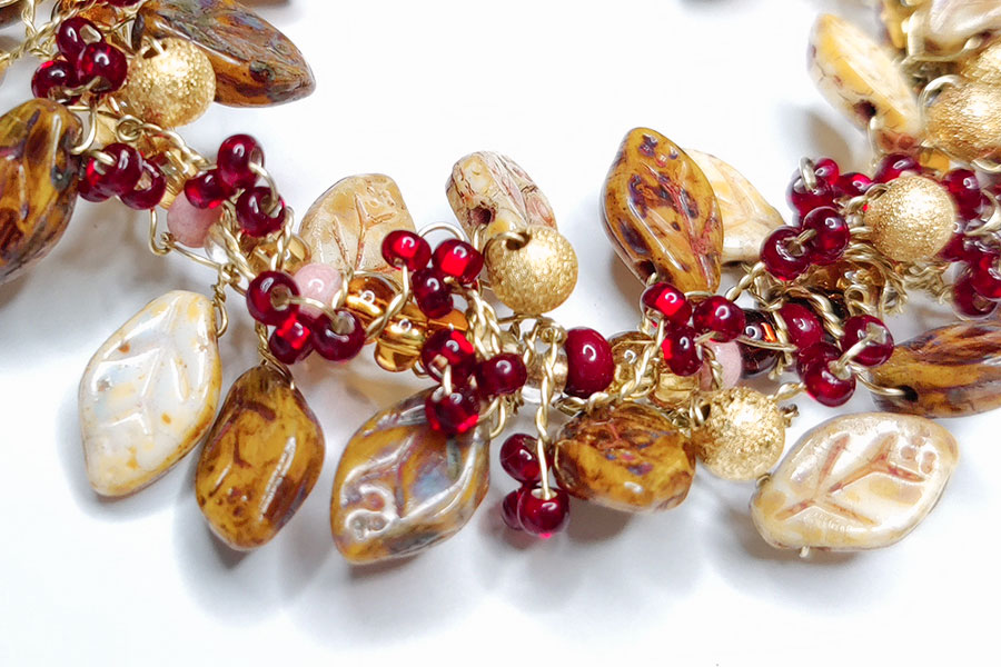 Made with gorgeous Czech Glass leaves. 6cm Diameter.
