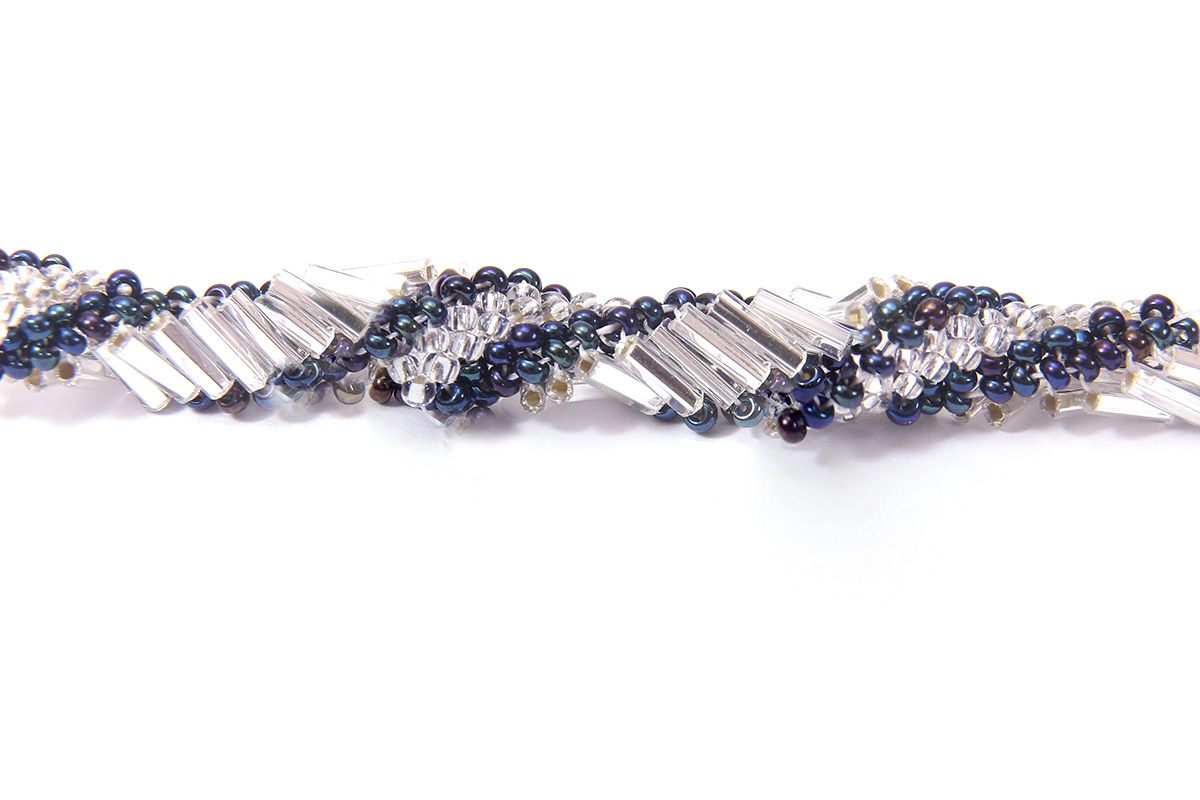 A stunning Russian spiral bangle made with Preciosa seed beads and 7mm bugle beads!