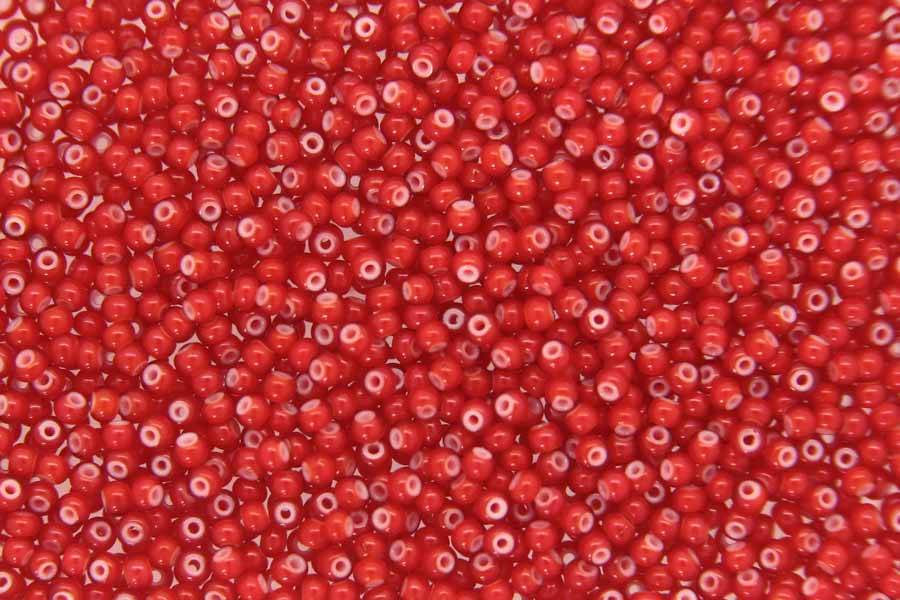 White Lined Cherry Red Preciosa Seed Beads