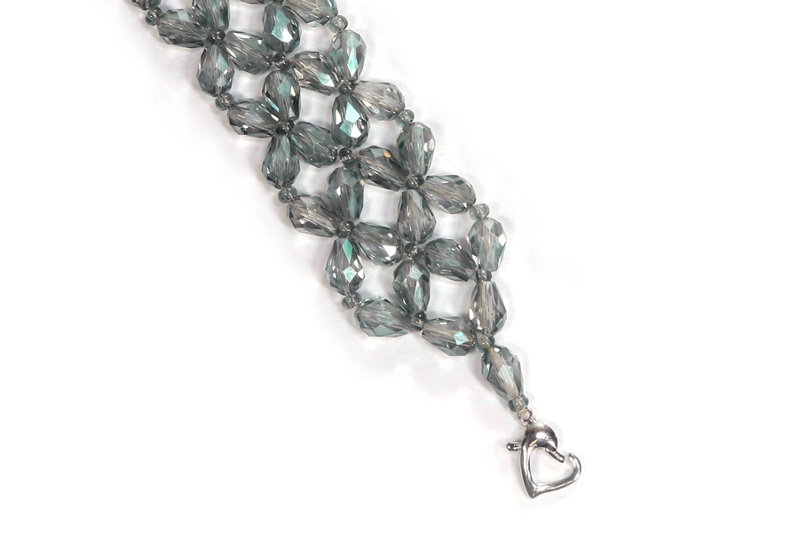A romantic and feminine design, the Romance Crystal Bracelet kit uses facetted crystal drop beads and size 8 seed beads to make a unique bracelet. An excellent jewellery making kit for beginners, the Romance is a must-have. This beaded bracelet catches the light beautifully due to the sparkly facetted crystal drops and complimentary seed beads.