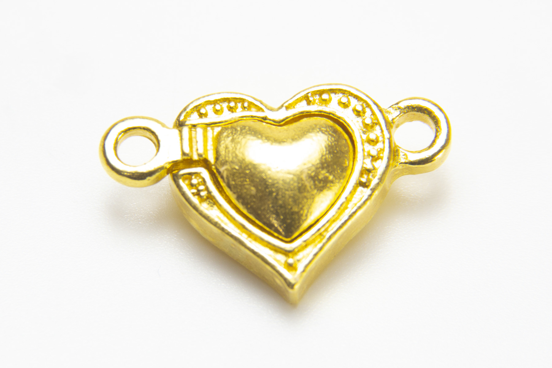 This 20x12mm sized clasp is plated with Gold. It has a Heart shape and has a Magnetic closure. There is 2 pieces per pack.