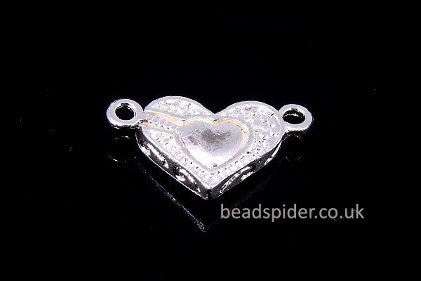 Bright Silver Patterned Heart Inset Magnetic Lock Clasp