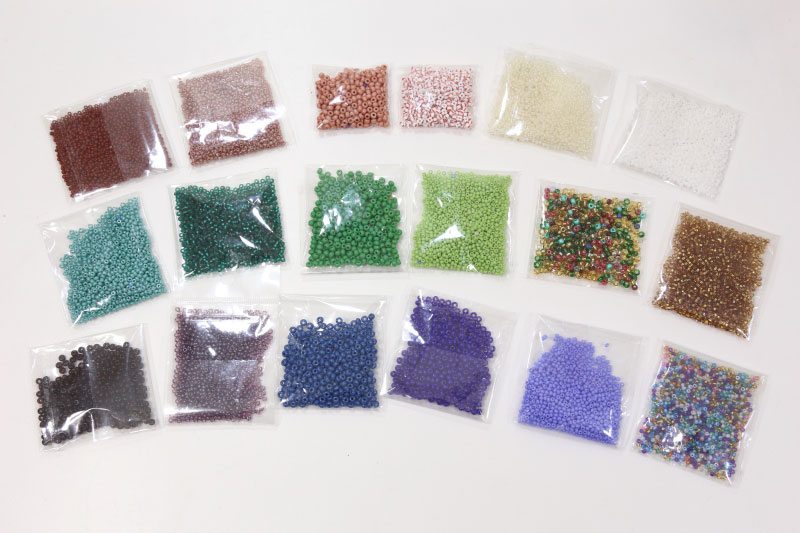18 x 10g of assorted Preciosa Czech glass seed beads across a full rainbow of colours