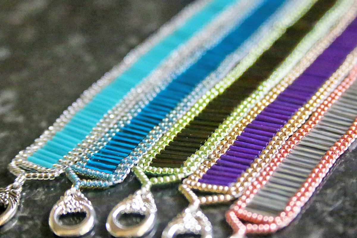 The Athena Bugle Bracelet is available in 5 colours!