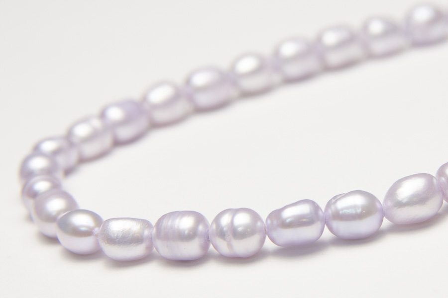 A 16 inch strand of high quality Lilac Baroque Pearls. These beautiful pale lilac pearls look sophisticated and elegant.
