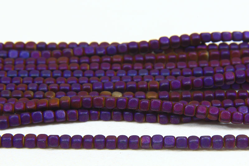 2mm Hematite Matte Mystic Purple Rounded Cubes 8in Strand
