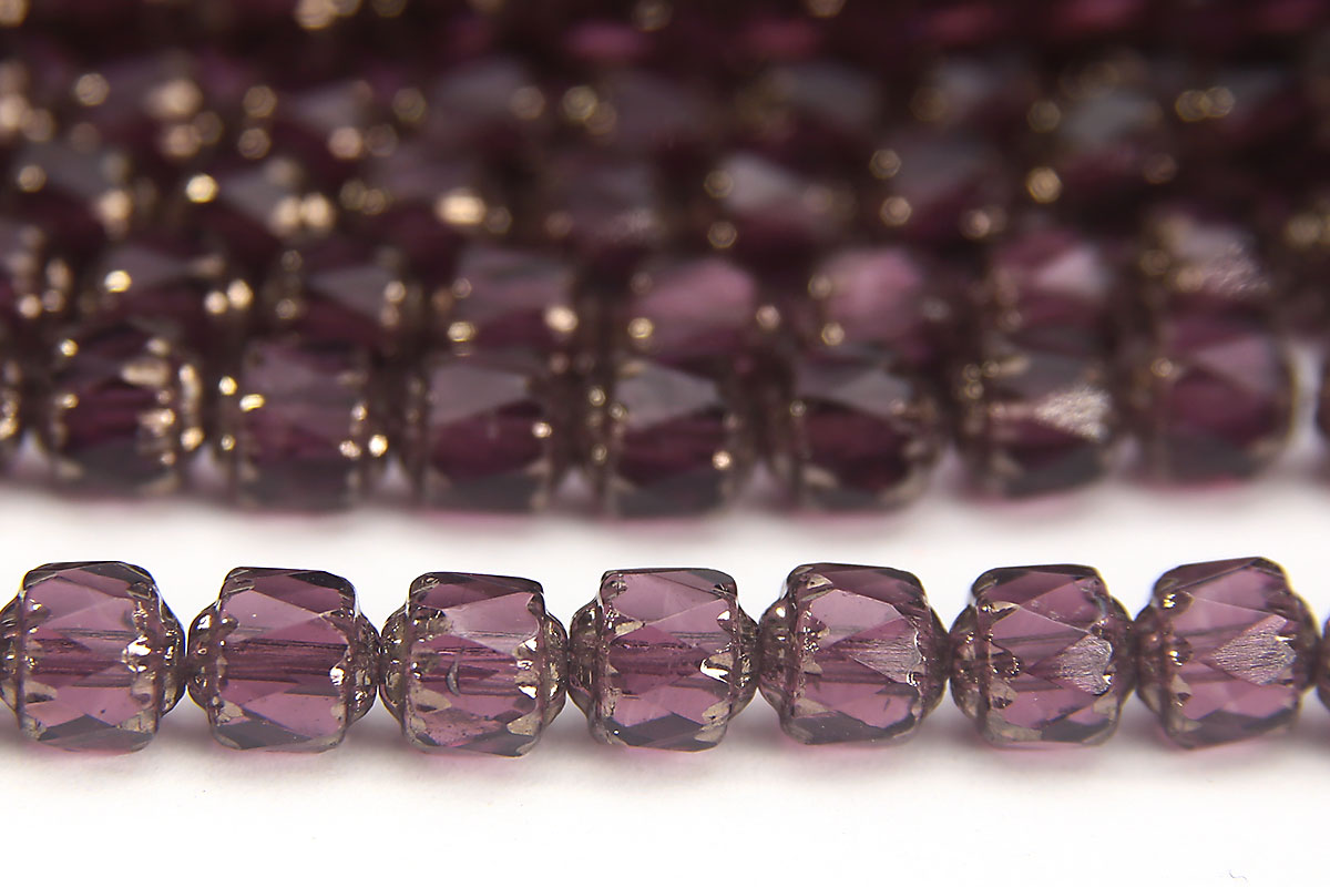 Plum, Silver Crowned 6mm Facetted Cathedral Beads, 25 pieces
