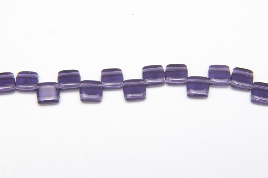 A 33 bead strand of Transparent Purple 2-Hole Tiles made from the highest quality pressed Czech Glass. With 2 holes passing through each one, these beads are excellent for multistranded jewellery and bead weaving designs.