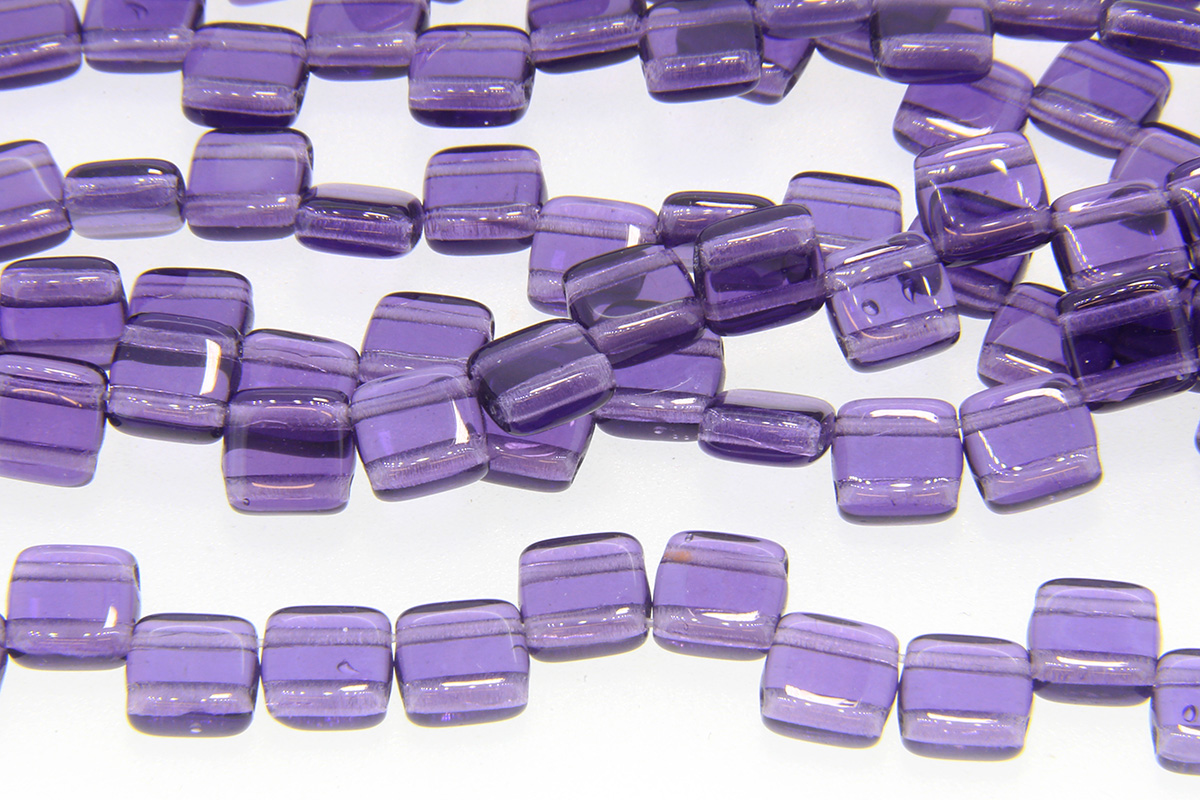 A 33 bead strand of Transparent Purple 2-Hole Tiles made from the highest quality pressed Czech Glass. With 2 holes passing through each one, these beads are excellent for multistranded jewellery and bead weaving designs.