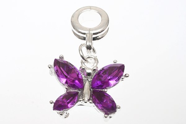 A beautiful Pandora Style Violet Crystal Butterfly Charm bead with a 4mm hole. They make an excellent addition to your jewellery.
