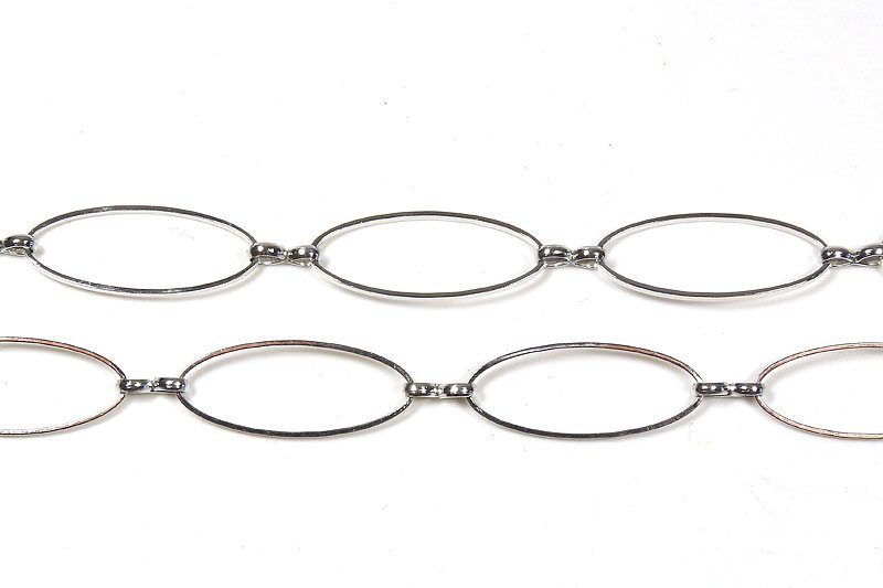 High quality silver plated brass chain. 1m long. Linked ovals and circles.