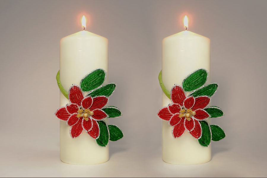 Makes one beaded poinsettia flower. Kit contains all beads required, wire, florist tape and full set of instructions. Candle NOT included.