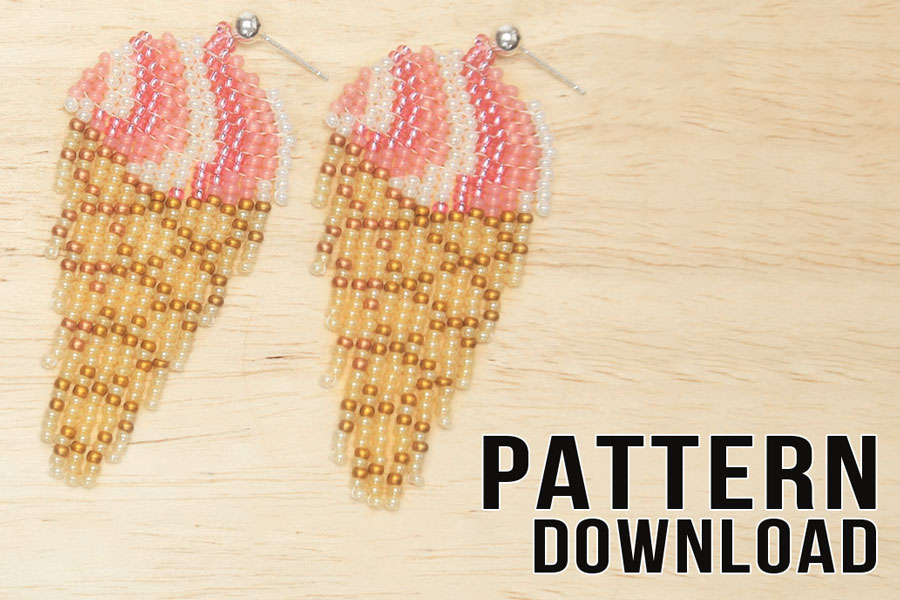 Raspberry Ripple Ice Cream Beaded Fringe Earrings Pattern Download