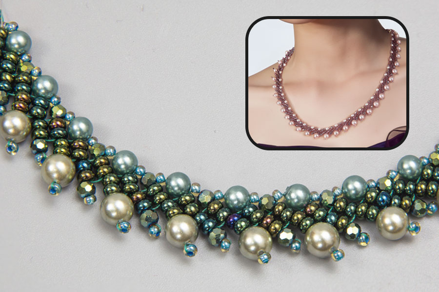 This gorgeous Pearl Beaded Necklace is the perfect accompaniment for your evening wear outfits during the summer months or parties during the holiday season. Made using Preciosa Seed beads, satin pearls, mother of pearl beads and crystals, this beaded necklace is bound to make a statement. This jewellery making kit will teach you St Petersburg stitch as well as how to make your own crystal beaded clasp, with full written instructions with diagrams for every step of the way.