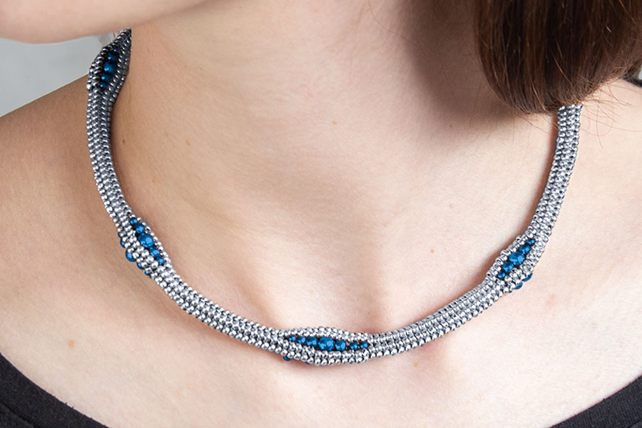 Made with Herringbone Stitch and Hematite Beads