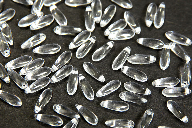 3x7mm Clear Crystal Czech Glass Daggers, 100 beads. Pressed Czech Glass with a shiny surface