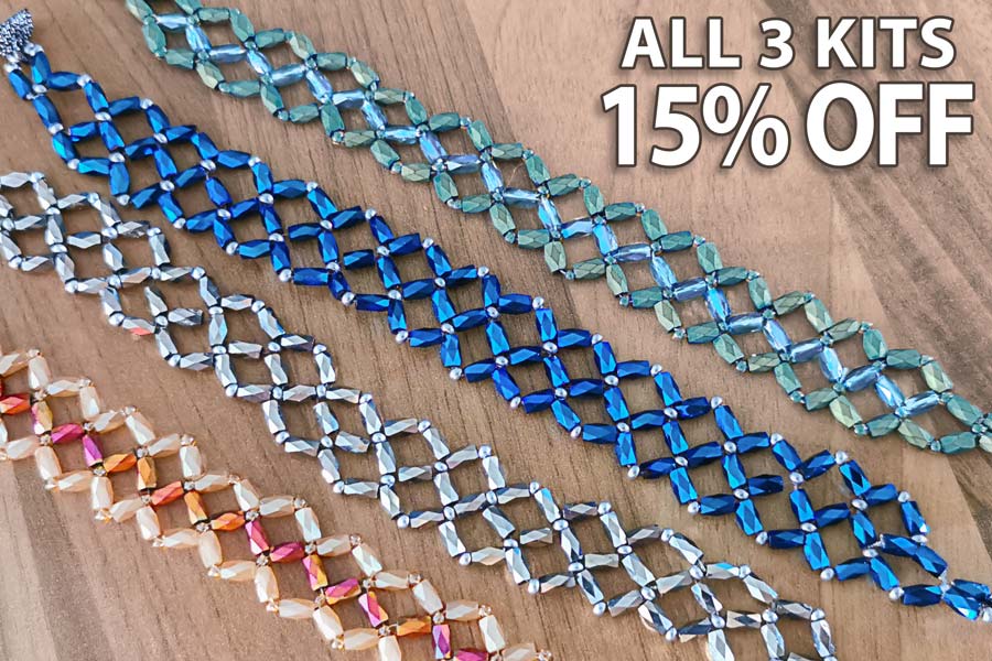 Each kit features a beautiful combination of 2 different crystal bugle beads woven into a delicate netted bracelet that’s as light as air. This minimalist piece is perfect for layering or wearing alone and can be made into single block colours or multi-coloured.