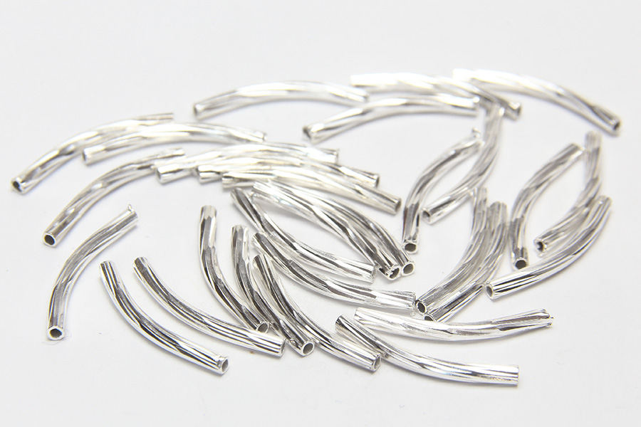 These 20x2mm sized Fancy Curved Tubes are plated with Bright Silver and have a 1.8mm Hole. There are 30 per pack.