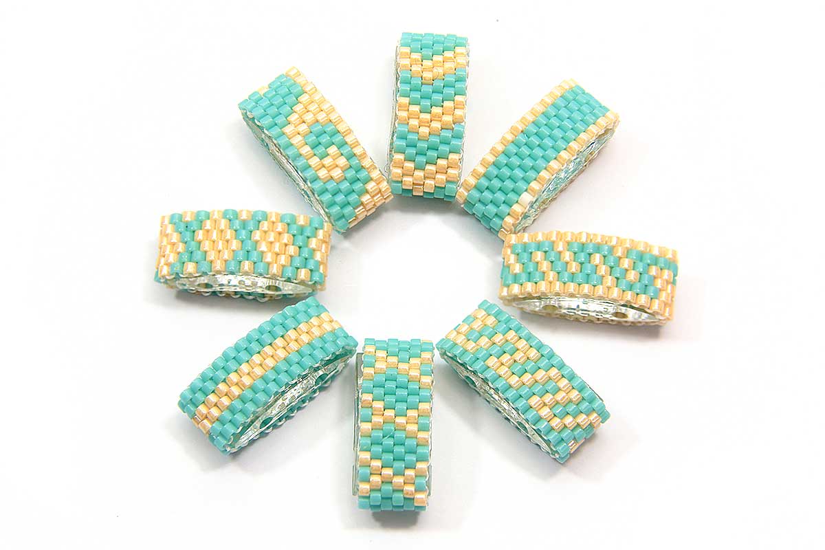 A MASSIVE pack of 100 carrier bead patterns made in peyote stitch. These fantastic patterns include 66 patterns in two colours and 34 patterns in three colours. An example can be seen in our Riviera Bracelet Kit.