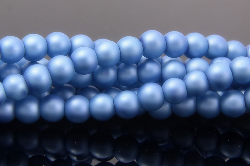 6mm Cool Blue Satin Glass Pearls, 75 Beads