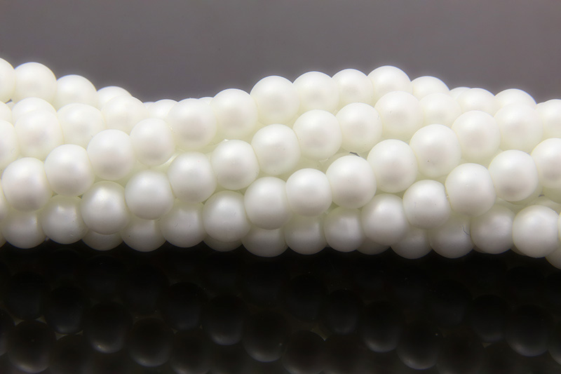 6mm Snow White Satin Glass Pearls, 75 Beads