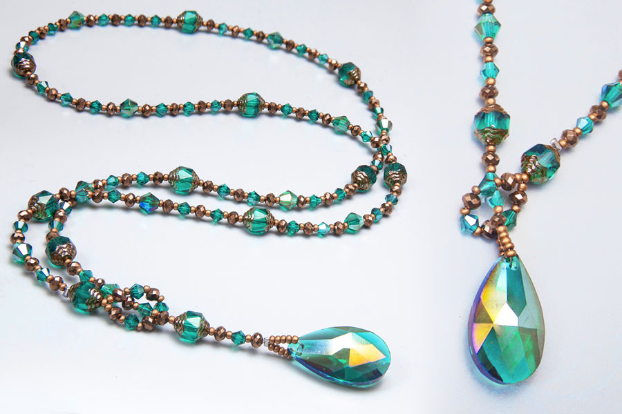 Firstly, made with a gorgeous facetted crystal pendant, it is designed so that you can adjust the size to suit your style! Adorned with sublime, high quality crystals and matched with lustrous Czech glass beads, the sparkling nature of the necklace is truly eye catching. The lustrous pendant is perfect in the sunshine or hung over a thick jumper on those windy mornings.