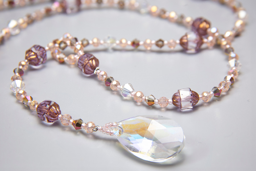 Firstly, made with a gorgeous facetted crystal pendant, it is designed so that you can adjust the size to suit your style! Adorned with sublime, high quality crystals and matched with lustrous Czech glass beads, the sparkling nature of the necklace is truly eye catching. The lustrous pendant is perfect in the sunshine or hung over a thick jumper on those windy mornings.