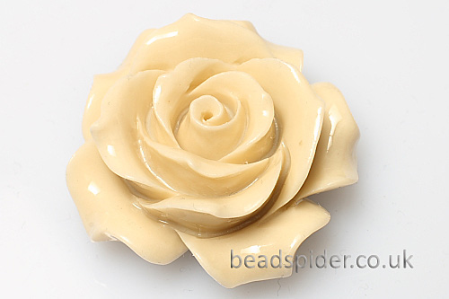 This 25mm Cream Rose beads are moulded from an alabaster and shell composite then individually hand finished to have pristine edges and details. The Alabaster provides each bead with both durability and a luxurious feel with the shell providing a lustrous appearance and slight translucence as though each gemstone flower has its own gentle inner glow. Each packet contains 1 bead.