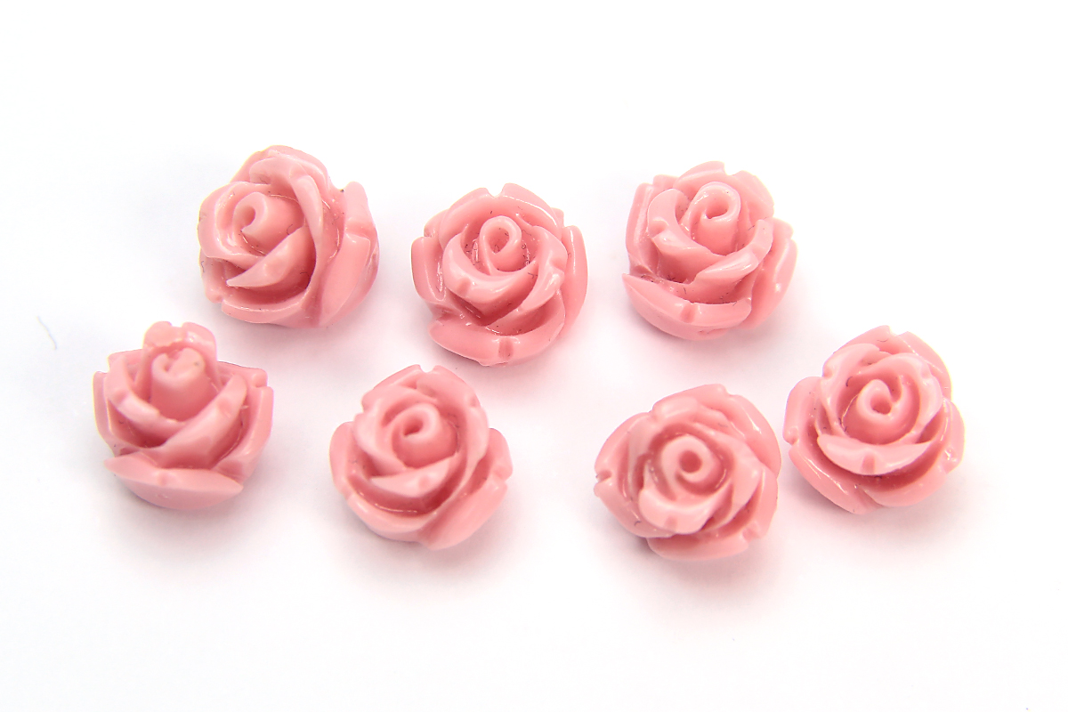 Each of these 8mm Flamingo Rose beads are molded from an alabaster and shell composite then individually hand finished to have pristine edges and details. The Alabaster provides each bead with both durability and a luxurious feel with the shell providing a lusterous appearance and slight translucence as though each gemstone flower has its own gentle inner glow. Each packet contains 7 beads.