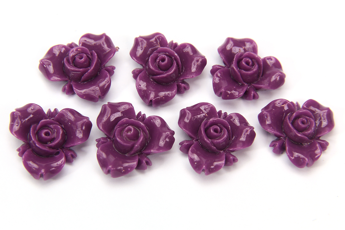 Each of these 15mm Violet Open Rose beads are molded from an alabaster and shell composite then individually hand finished to have pristine edges and details. The Alabaster provides each bead with both durability and a luxurious feel with the shell providing a lusterous appearance and slight translucence as though each gemstone flower has its own gentle inner glow. Each packet contains 7 beads.