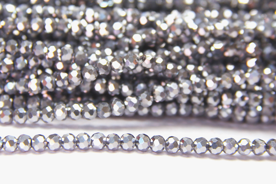 3mm Metallic Silver Facetted Round Crystals