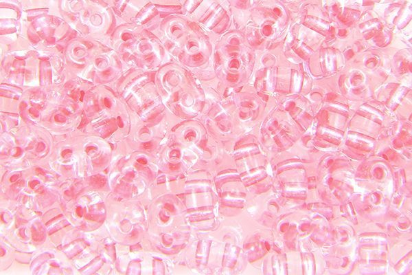 2.5x5mm Clear Pink lined Preciosa Twin Beads, 12.5 grams