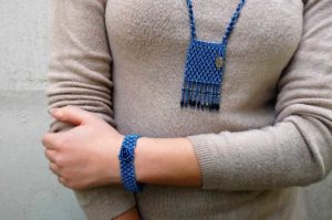 This unique design is perfect for holding anything small and dear to you, things you want to have with you while wearing it. The pattern can also be expanded upon to create any larger bag as well. It’s the exact same technique! This stylish and useful necklace and bracelet set will add a great focal point for both your day or night time outfits.