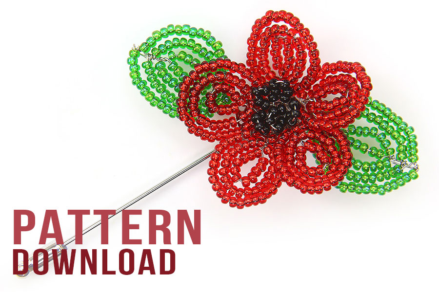 Precious Poppy French Beaded Flower Brooch Pattern Download