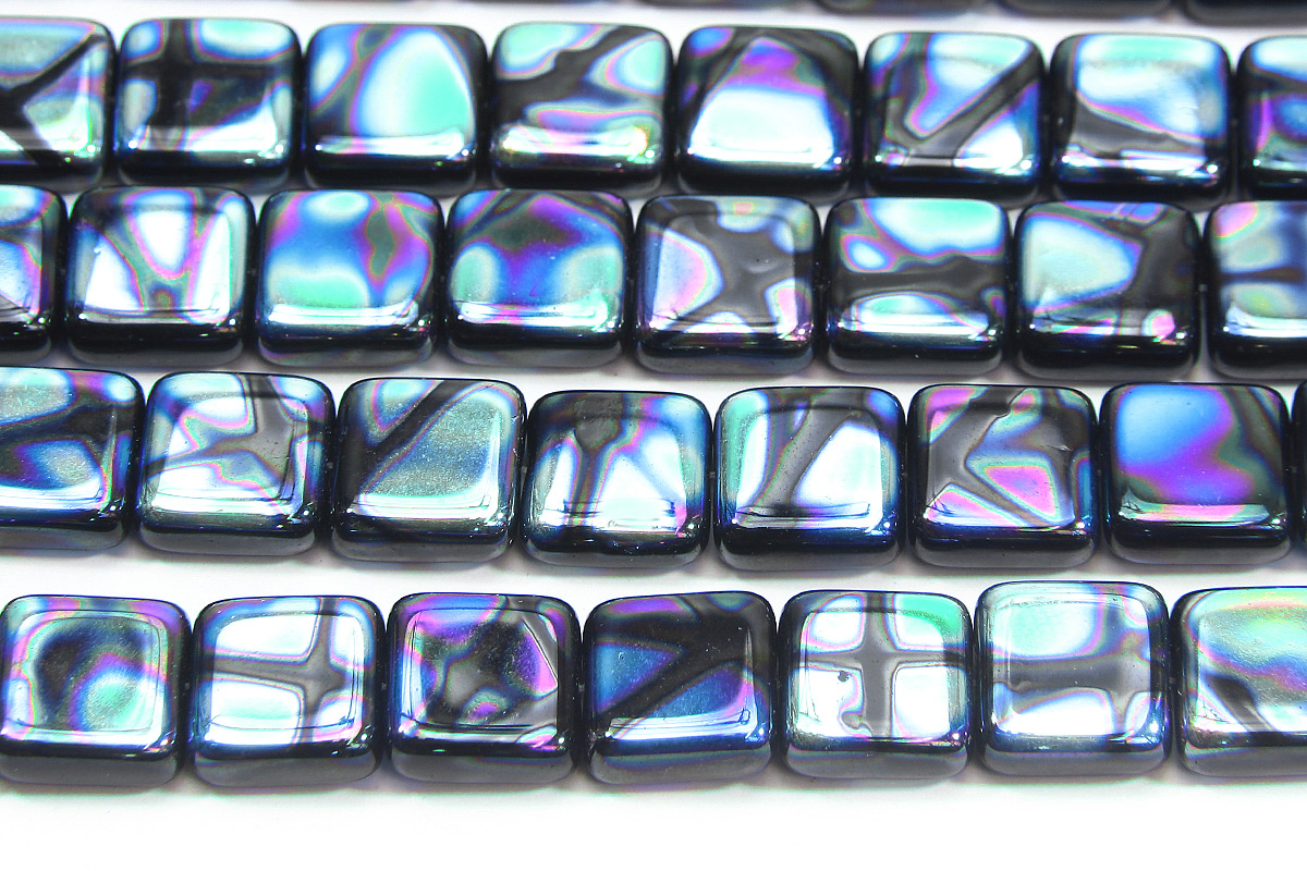 10mm Black Square with Blue AB Mottle Peacock Beads, 20 beads