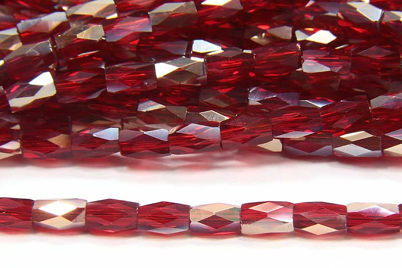 2.5×4.5mm Ruby Gold Lustre Facetted Crystal Bugles, Approx 100 beads