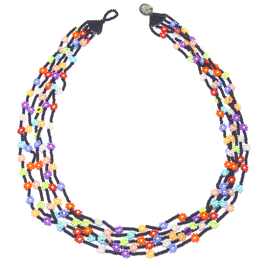 Make a beautiful beaded daisy chain necklace using daisy chain and brick stitch. This daisy chain design is super fun and unique, great for the spring and summer months. Wear this beaded necklace with your favourite dresses for a feminine look or over a jumper to fight of those winter blues. The Crazy Daisy Flora Necklace Kit includes everything you need to make your own necklace.