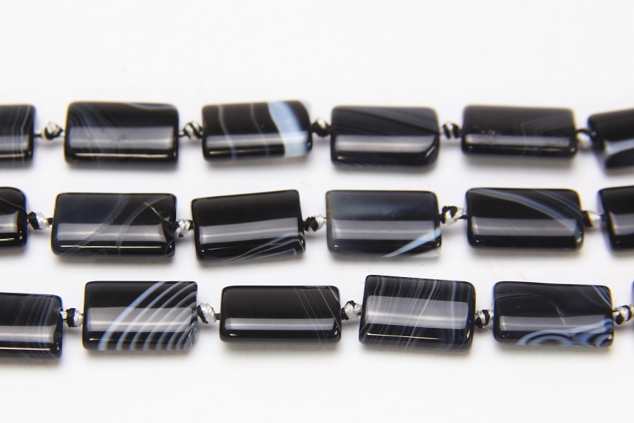 Black Banded Agate 8x15mm Rectangle Semi Precious Gemstones