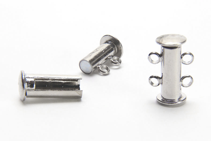 This 11x16mm sized clasp is plated with Silver. It has a 2 Strand shape and has a Magnetic Barrel closure. There is 2 Pieces per pack.