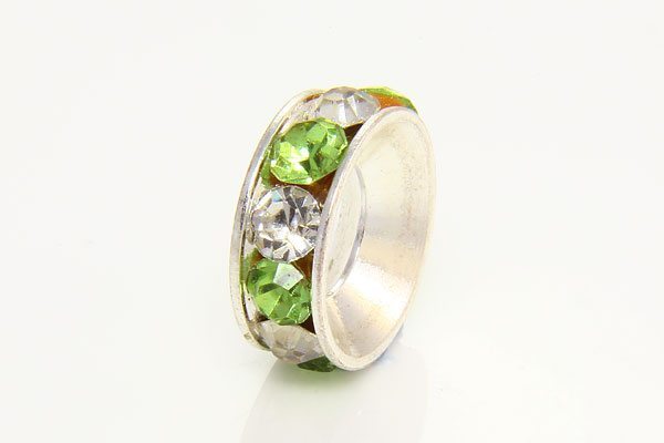 A beautiful Pandora Style Peridot and Clear Studded Ring crystal studded bead with a 4mm hole. They make an excellent addition to your jewellery.